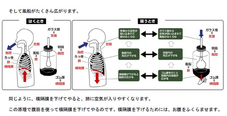 正しい腹式呼吸を理屈からきちんとお伝えしています。