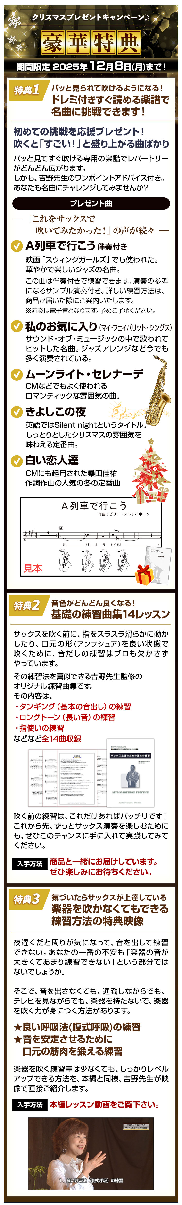 自宅で楽しく学ぼう!吉野ミユキのアルトサックス講座第1弾 基礎編 レッスン内容紹介